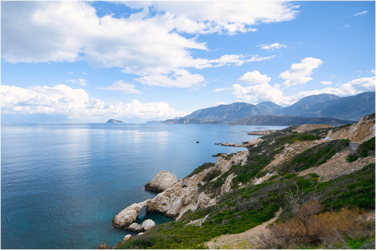 Eine Tour durch eine kleine Schlucht westlich von Kavousi. Der Weg führt weiter oberhalb von Felswänden mit Sicht über das Meer Richtung Agios Nikolaos.