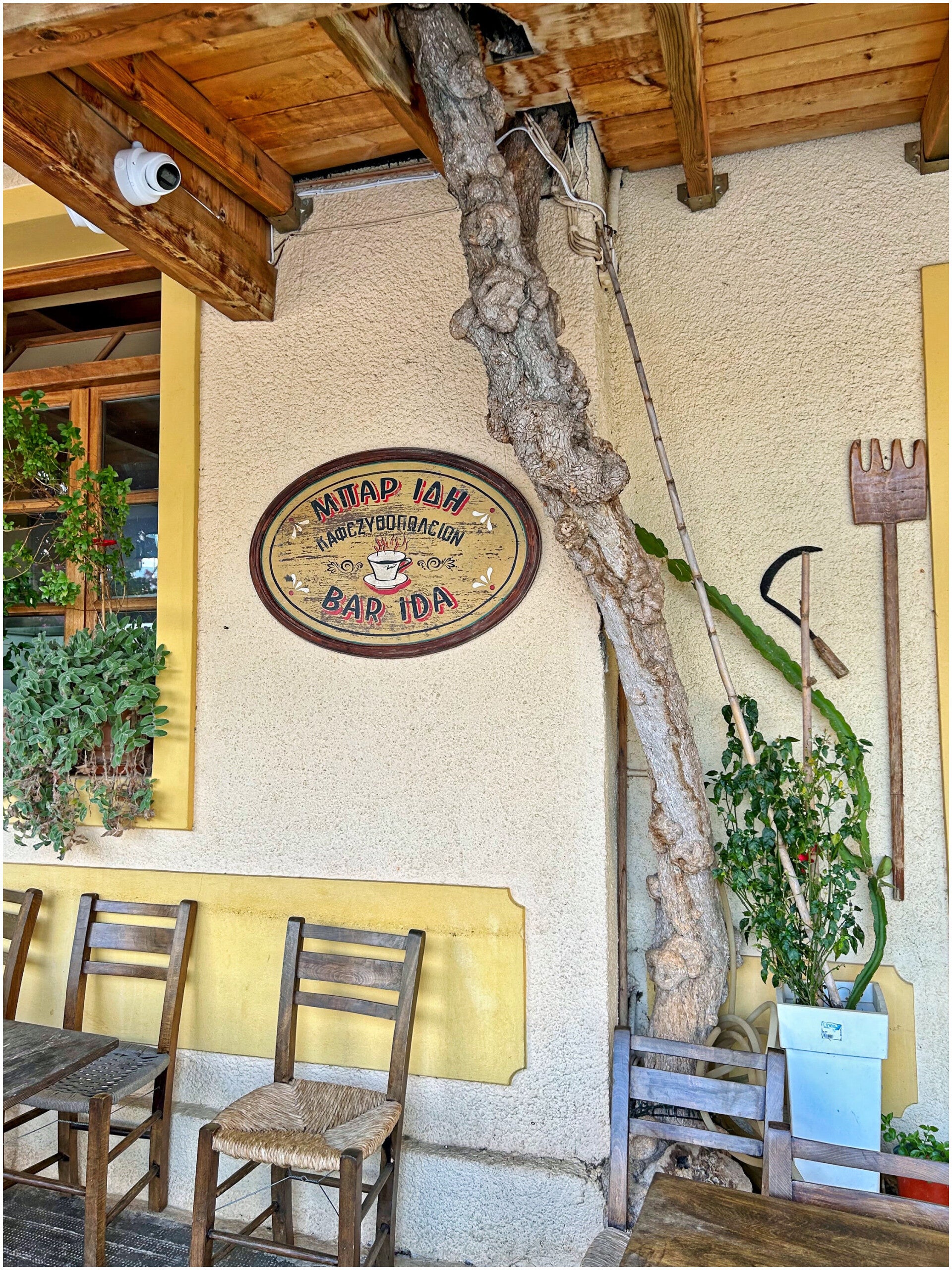 Das ganze begann mit der morgendlichen Autofahrt zum Strand. Als wir an der Taverna unten im Tal vorbeifuhren, trauten wir unsern Augen nicht. Da waren aussergewöhnlich viele Leute und Autos. Auf den zweiten Blick sahen wir dass "Stavrakakis Taverna" umgetauft wurde in "Bar Ida", Huch...!!!