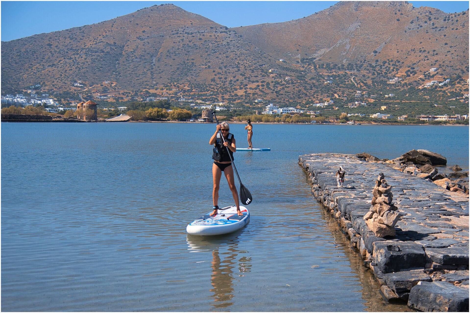 Die Konsequenz war, wir mussten an einen anderen Strand. Da Tanja im Yoga Anke kennen gelernt hatte, die auch "SUPT" (Stand up paddling) , sind wir schon einige Male auf der Halbinsel Spinalonga bei Elounda gewesen und haben die Ruhe und das ruhige Wasser, (es ist eine Art Lagune), schätzen gelernt! Auch gehen wir vermehrt an den Karavoustasi Beach bei Istron, hier ist nicht viel los und der Genuss auf hohem Niveau! Man muss nur immer etwas schauen wie der Wind weht und nicht zuviel Dreck angeschwemmt wird. So gesehen hat das Hundverbot seinen Schrecken verloren und wir sind mit der Situation zufrieden.